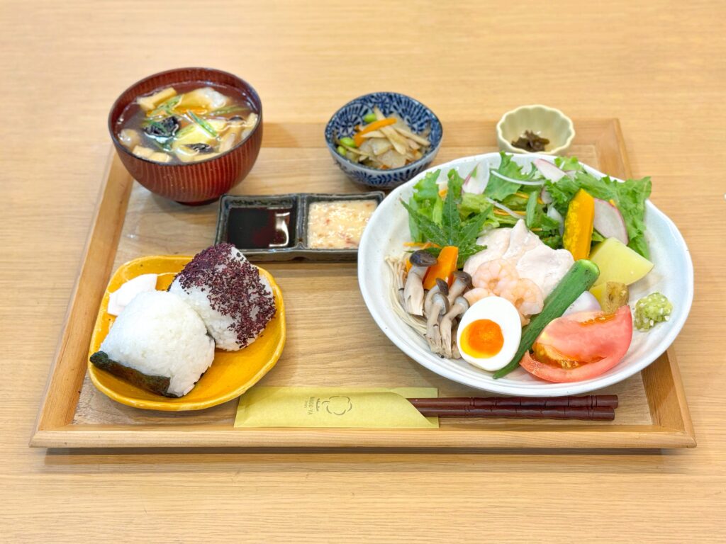 塩麹蒸し鶏と彩り蒸し野菜~麹かぼす胡椒、かぼすポン酢、麹チリマヨの3種だれ~